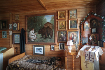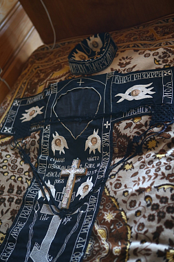 В доме-музее отца Авеля мы узнали, что он дорожил мантией священномученика Мисаила, архиепископа Рязанского и Муромского, на которой имеется отметина от стрелы, пущенной в него язычником. Жил святитель во времена царя Алексея Михайловича Тишайшего и Патриарха Никона, но прославили его в лике святых лишь в наше время. Одним из главных подвигов истового ревнителя благочестия стало распространение веры среди мордвы и татар Рязанского края. Всего за свою недолгую жизнь архипастырь крестил более четырех с половиной тысяч человек. Умер он от стрелы язычника, прожив после смертельного ранения еще девять дней в жестоких страданиях. Но каждый день для него совершалась Божественная литургия, он причащался Святых Христовых Таин, а на Светлой седмице скончался светло и радостно. Чудом сохраненная походная мантия, в которой мученик в последний раз отправился на проповедь к мордве, после революции 1917 года была передана в Рязанский краеведческий музей, в 1994 году – в возрождающийся Иоанно-Богословский монастырь.