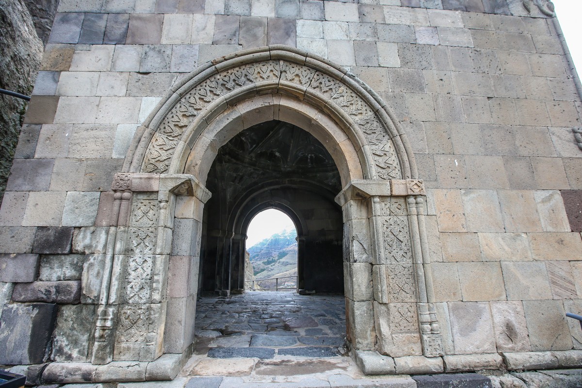 Основным краеугольным и смысловым центром Вардзии согласно плану царя Георгия III и царицы Тамары стал храм Успения Пресвятой Богородицы. От него в обе стороны шли пещеры, галереи, комнаты, хранилища… Сегодня храм находится как бы в глубине горы, снаружи видны лишь арки притвора.