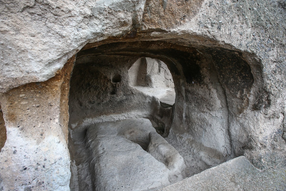 Чтобы оценить грандиозность замысла грузинского царя, мысленно представьте себе многоэтажный дом в километр длиной, построенный в недрах Эрушети! Подземные пещеры поднимались ввысь на 19 этажей (ярусов), а вглубь горы они уходили на 50 метров.