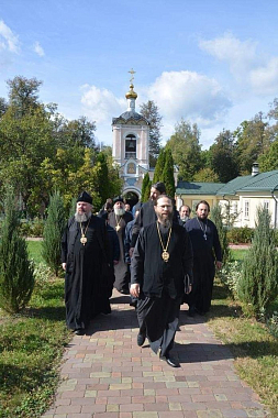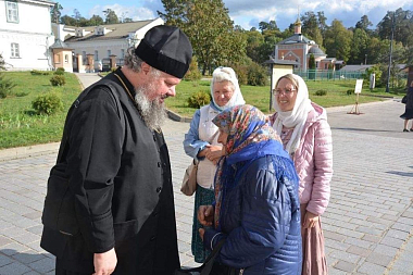 После богослужения епископ Леонид передал щигровским паломникам ковчег с частицами мощей оптинских старцев и сопроводил гостей-священнослужителей в скит.