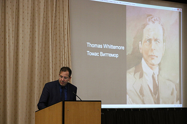 Свое выступление он начал с рассказа о главных действующих лицах всей истории: Чарльзе Крейне, Томасе Виттеморе, Константине Сараджеве. Интересно было узнать, что мультимиллионер Чарльз Крейн 25 раз приезжал в Россию, был поистине очарован русской музыкой и колокольным звоном. Для Крейна спасение Даниловских колоколов было спасением красоты.