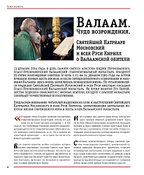 13 декабря 2014 года, в день памяти святого апостола Андрея Первозванного, Спасо-Преображенский Валаамский ставропигиальный монастырь празднует 25-летие возрождения обители. В ночь с 13 на 14 декабря 1989 года на остров прибыли первые шесть иноков, и после пятидесятилетнего осквернения и разорения Валаама здесь вновь затеплилась монашеская жизнь. По установившейся традиции Святейший Патриарх Московский и всея Руси ежегодно посещает Спасо-Преображенский Валаамский монастырь. Во время визитов Его Святейшество подробно знакомится с жизнью обители, беседует с братией монастыря, совершает торжественные богослужения. Предлагаем вниманию читателей выдержки из слов и выступлений Святейшего Патриарха Московского и всея Руси Кирилла, затрагивающие актуальные вопросы жизни современного мира и места в нем Валаамского монастыря.